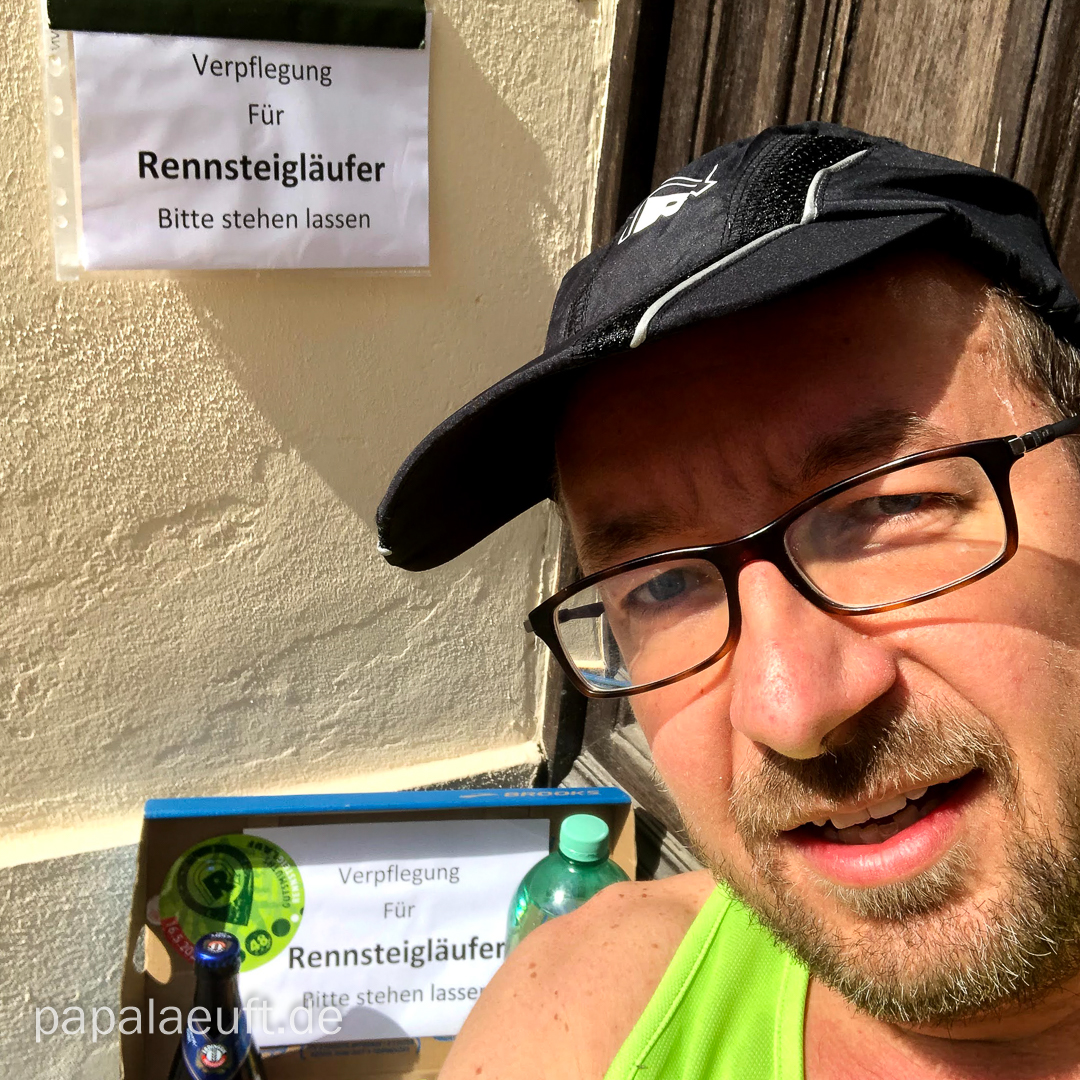 11. Mai 2020. Montag. Ich werde diese Woche von Tag zu Tag eher aufstehen, damit ich am Samstag einigermaßen gut aus dem Bett komme. Das klappt soweit 🙂 15. Mai. Kloßparty! Zum Glück gibt’s im Laden um die Ecke Heichelheimer Klöße. Immerhin! Sachen bereit legen. Erstmals ohne Laufchip, aber egal – was zählt, ist die Mission! 16. Mai. 4:30 aufstehen! 4:34 Uhr: Meldung 2021 ERLEDIGT. Pastafrühstück, Trinken, usw. – Ihr kennt das. 5:45 Uhr. Parkplatz vor’m Haus: Rennsteiglauf-Hymne, Schneewalzer, Rennsteiglied. Gattin will noch ein Startbild machen – darf sie! 5:59 Uhr – Startküsschen. MDR aktuell an, warten auf den 6.00 Uhr Piepser